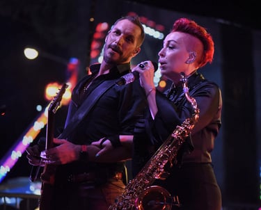 Le groupe MADAME ROUGE travaille avec des partenaires techniques permettant de vous fournir des prestations clés en main incluant la technique son et lumière optimale pour leurs spectacles.